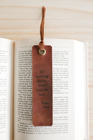 Bookmark measures approximately: 1.5 inch wide and 6 inches long, with a .25x5 inch leather tie and brass hardware