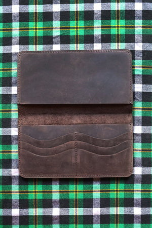 Wallet measures approx. 4.5 inches wide and 8 inches tall when closed